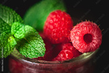 Raspberry. Raspberries in a Cup on a dark background. Summer and healthy food concept. Selective focus.