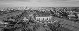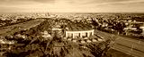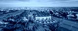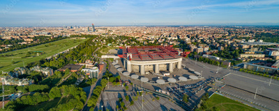 Aerial panoramic view of Milan (Italy) cityscape with the soccer stadium, known as San Siro Stadium