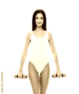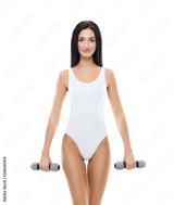 Young and fit girl pumping a dumbbells. Woman in sporty swimsuit. Sport, fitness and healthy lifestyle concept.