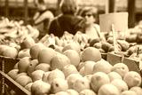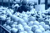 Shopping fruit on the marketplace. Orange and lemon in baskets ready for sale on the marketplace in Belgrade. Blurred customers on background