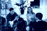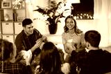 friendship, leisure and entertainment concept - happy friends with non-alcoholic beer playing cards game at home in evening