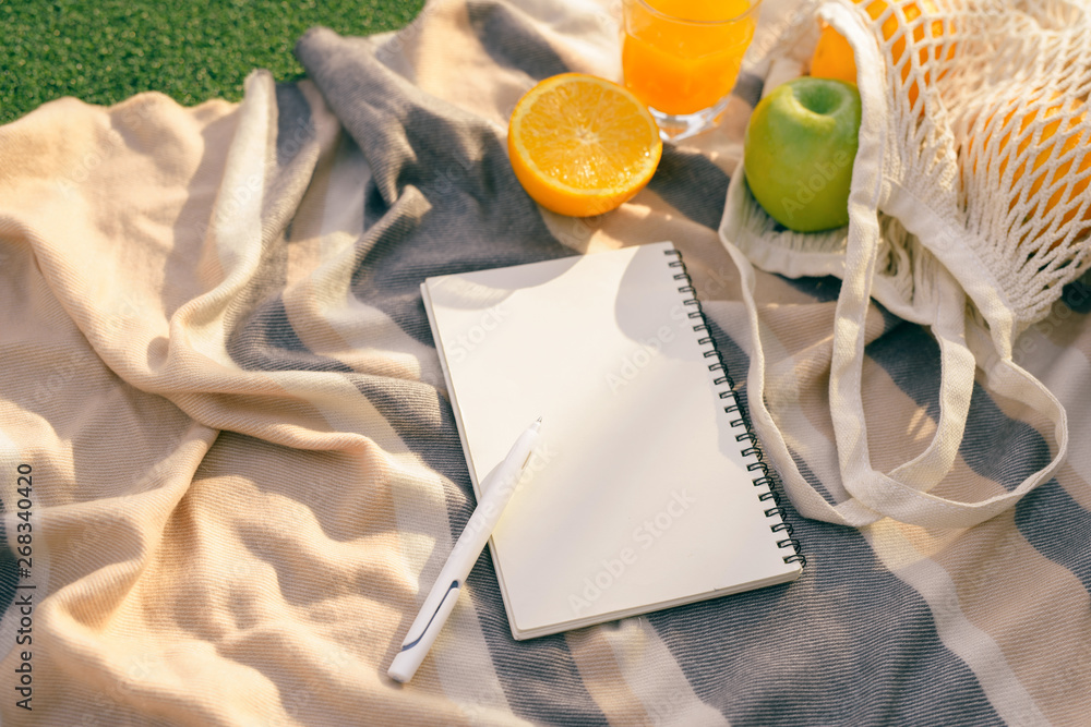 summer picnic in nature with diary and fruits
