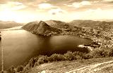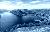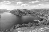 Scenic view of lake Lugano with Monte San Salvatore and Lugano town from Monte Bre, Ticino, Switzerland