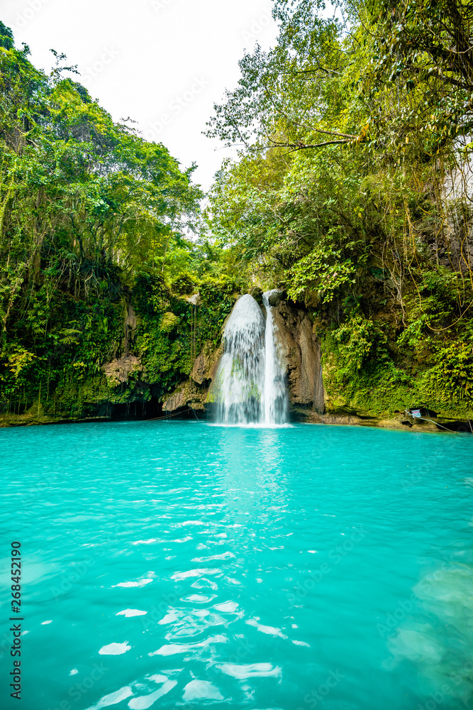 Kawasan Falls on Cebu island in Philippines, turquoise waterfalls