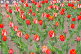 Blooming red tulips in the flowerbed