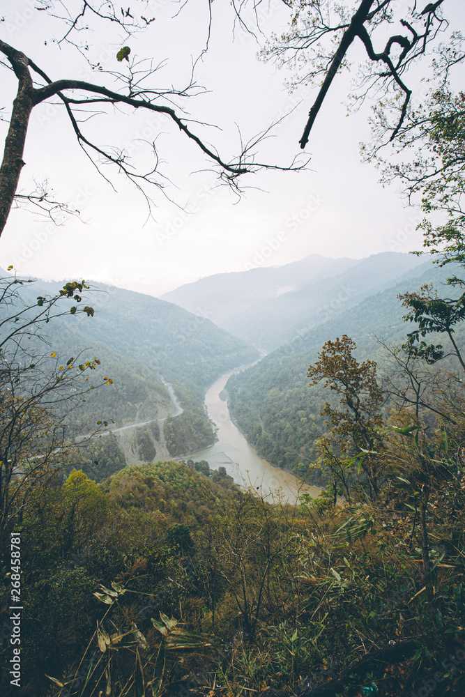 View from above of Teesta Valley Forest, Darjeeling, West Bengal, India