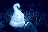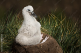 Young Black-browed Albatross chick sitting in its mud cup nest