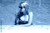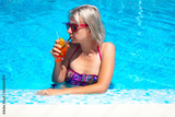Young Blonde Woman With Cocktail Drink In Pool Happy Gorgeous Female With Stylish Sunglasses And Bikini Drinking Cocktail And Relaxing In The Swimming Pool At Resort Spa