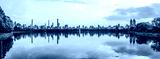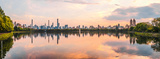 Sunset View of Manhattan skyline from Jacqueline Kennedy Onassis Reservoir in Central Park, reflection in water