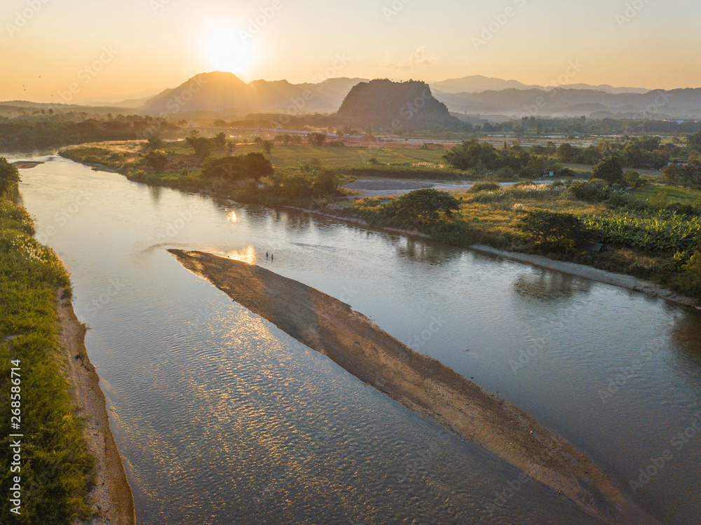 Beautiful sunset with Kok river the major river in Chiang Rai. Its waters originate from the mountains at Burma flowing through the province and draining in Mae Kong River.