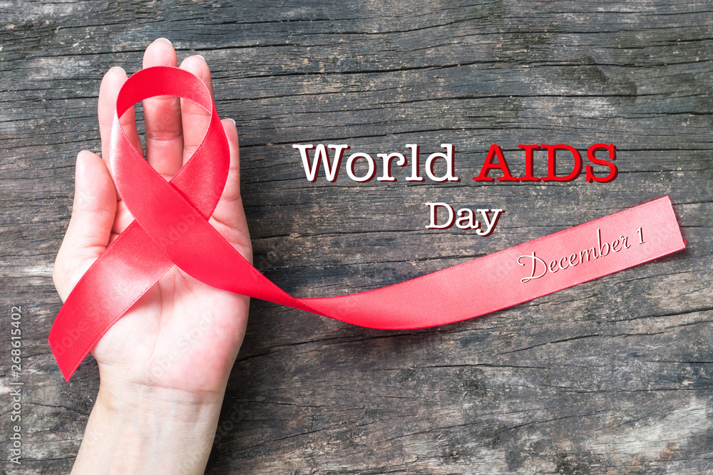 World aids day December 1 with red ribbon awareness campaign helping people with HIV concept