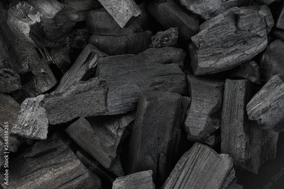 Black charcoal texture background. Close-up. Top view.