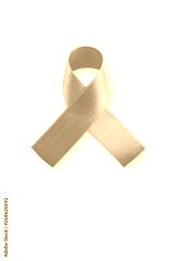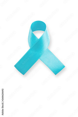 Blue ribbon symbolic of prostate cancer awareness and men's health in November month isolated on white background