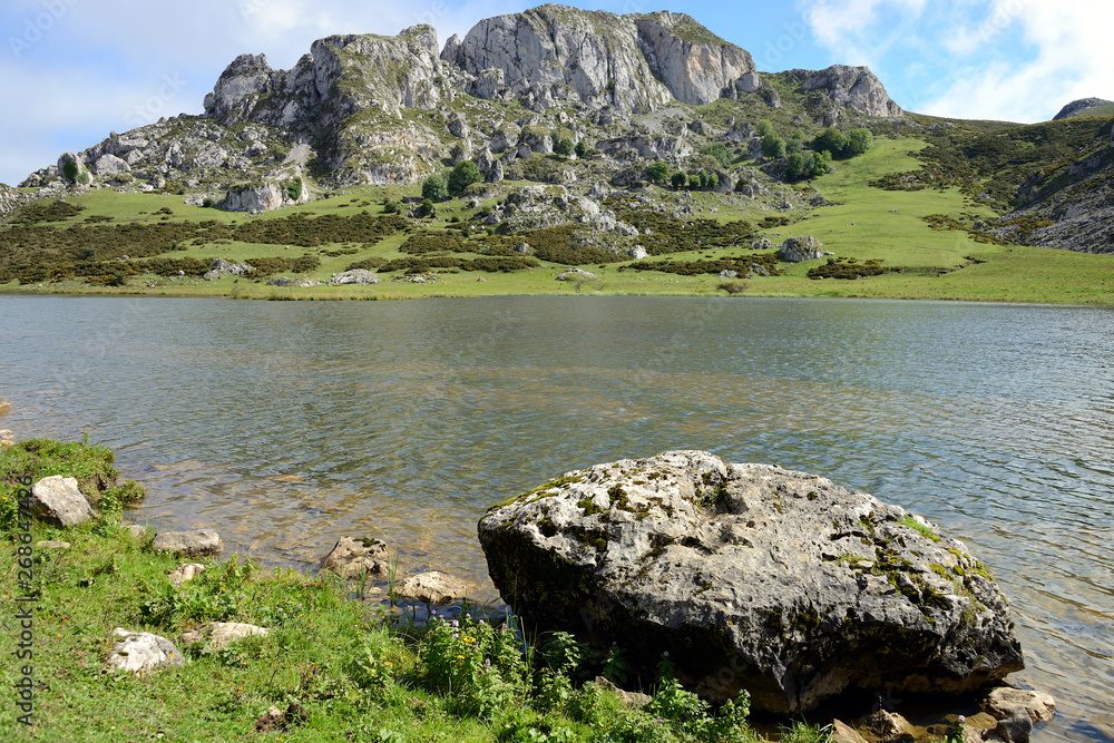 Glacial Lake Ercina. In the Peaks of Europe (Picos de Europa) National Park, Asturias, Spain, Europe