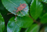 Western conifer seed bug insect, Leptoglossus occidentalis, or WCSB on a green leaf