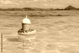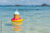 Tropical drinks floating on tropical sea with copy space, Summer vacation and travel concept