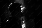 portrait photo of a couple in a kiss under water drops