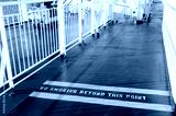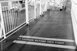 Sign on the floor of a deck on a ferry warning passengers that smoking is prohibited beyond this point.