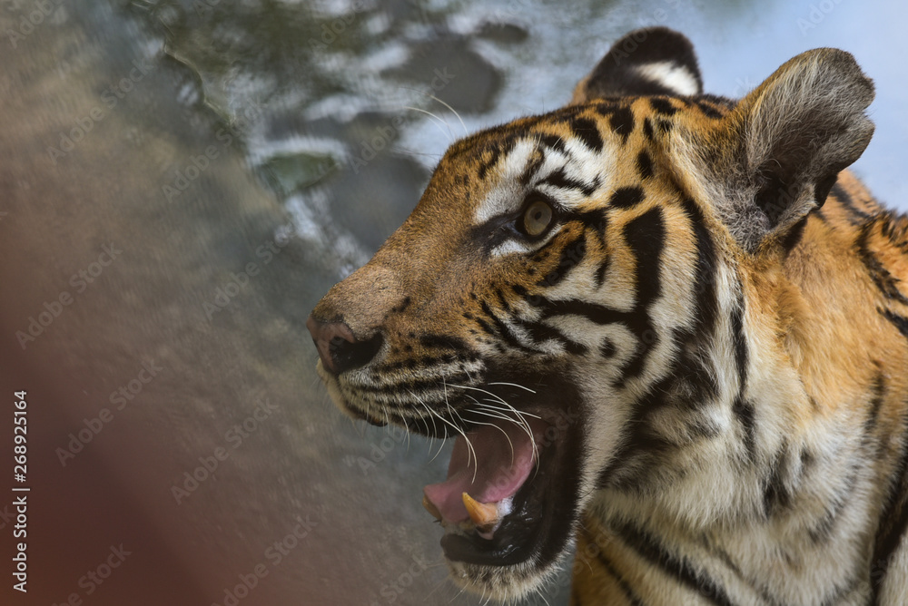 Tiger Panthera tigris is the largest species among the Felidae and classified in the genus Panthera. It is most recognizable for its dark vertical stripes on reddish-orange fur with a lighter undersid