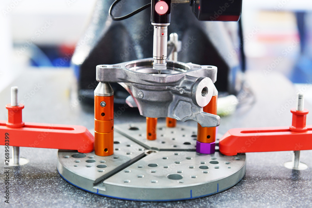 Close up automatic coordinate measurement machine (CMM) for inspection high precision part during working