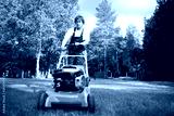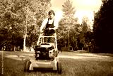 lawn mower man on the backyard