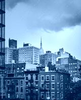 Retro toned picture of Manhattan cityscape, New York City, USA.