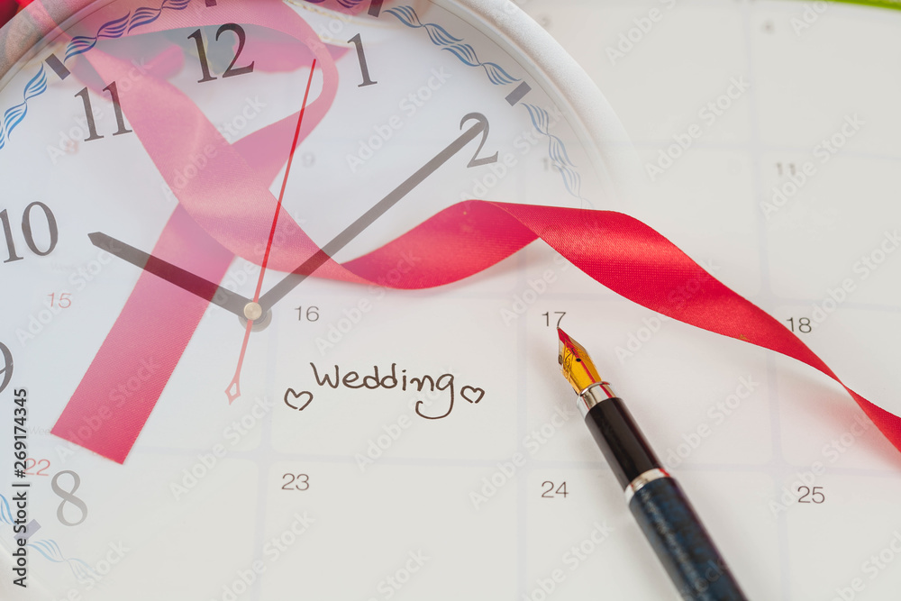 Time for Reminder Wedding day in calendar planning and fountain pen with color tone.