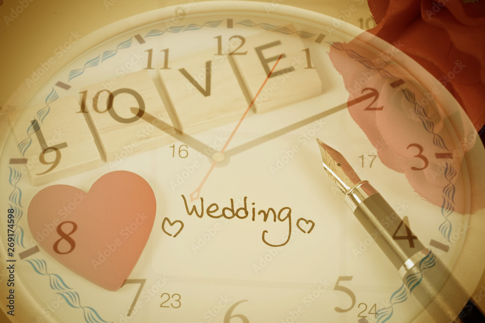 Reminder Wedding day in calendar planning time and love letter on wood with color tone.