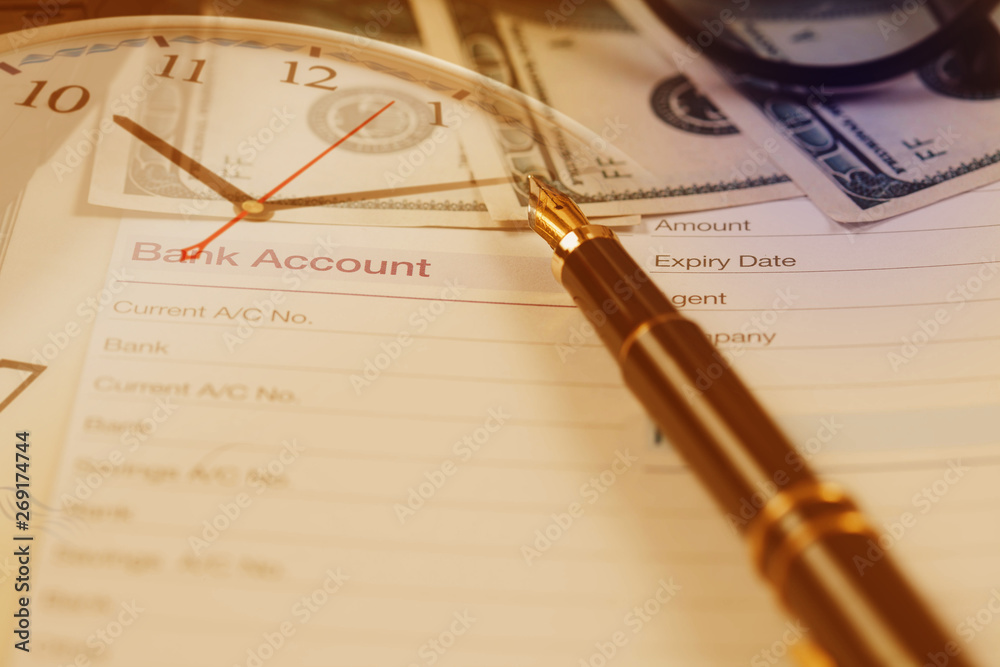 bank account in book note with fountain pen for business financial time.