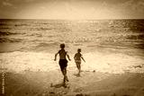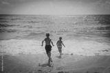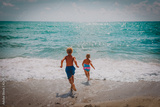 happy boy and girl run swim on beach