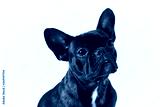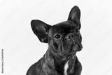 Puppy Black French bulldog sitting and looking on camera , isolated on white
