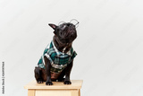 Smart dog. French bulldog in glasses and shirt, very smart and clever. Isolated on white background. Education concept
