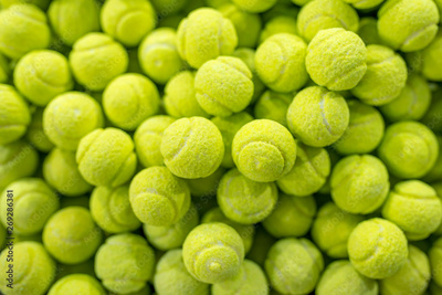 Close up of colorful sweet candy pieces shaped like tennis balls