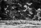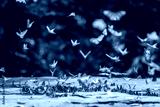 Selective focus Butterflies on the ground and flying in nature background.Blurred Tailed Jay butterflies (Graphium agamemnon) in green forest.