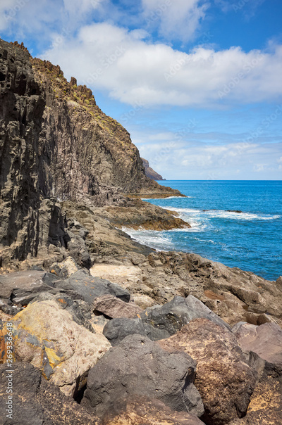 Scenic volcanic rock coast near San Andres, Tenerife.