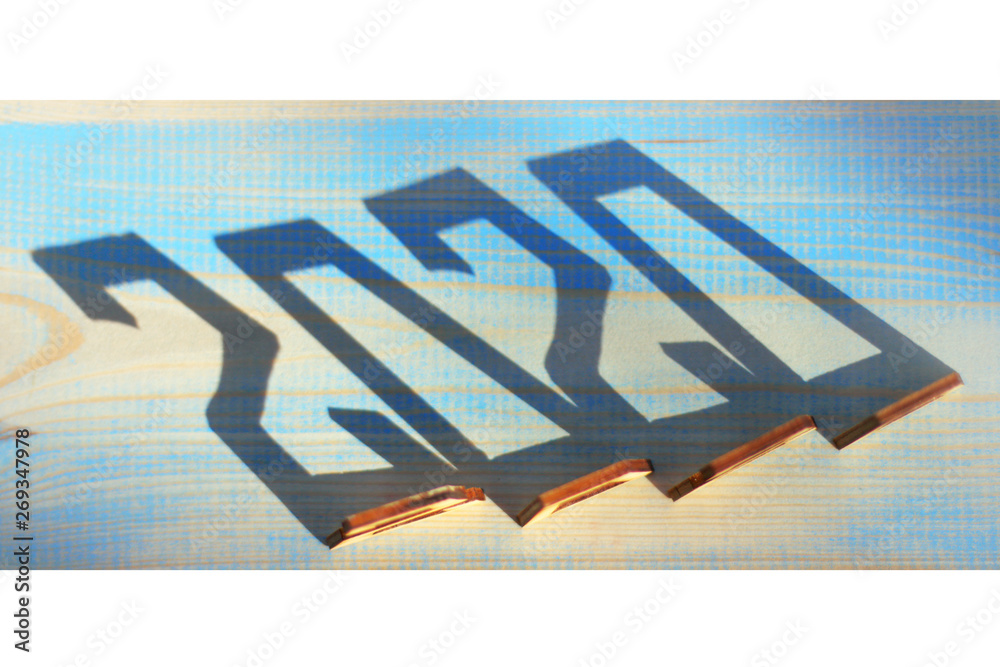 wooden figures cast a shadow in the shape of the number 2020. new year is coming soon