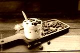 Blueberries in fresh organic yogurt in glass