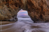 Sunset Through Sea Arch in Hole in the Wall beach. Bonny Doon, Santa Cruz County, California, USA.