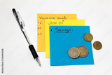 colorful sticky notes money and pen. plans for summer