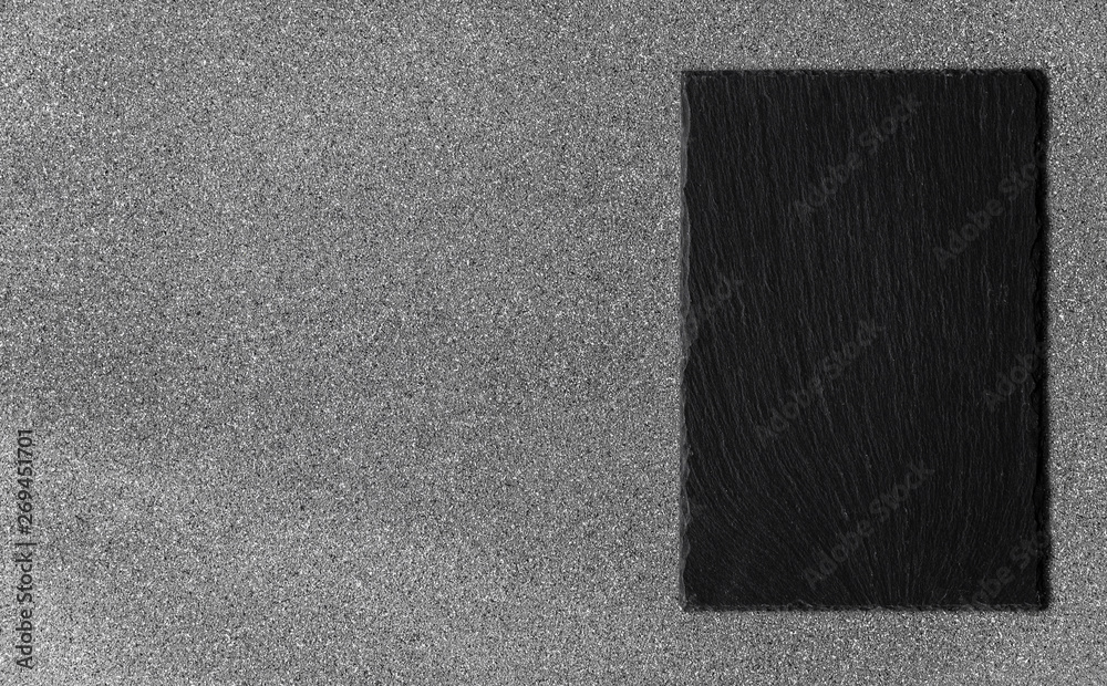 Background of grey stone texture and pattern with black slate piece for food and product photography