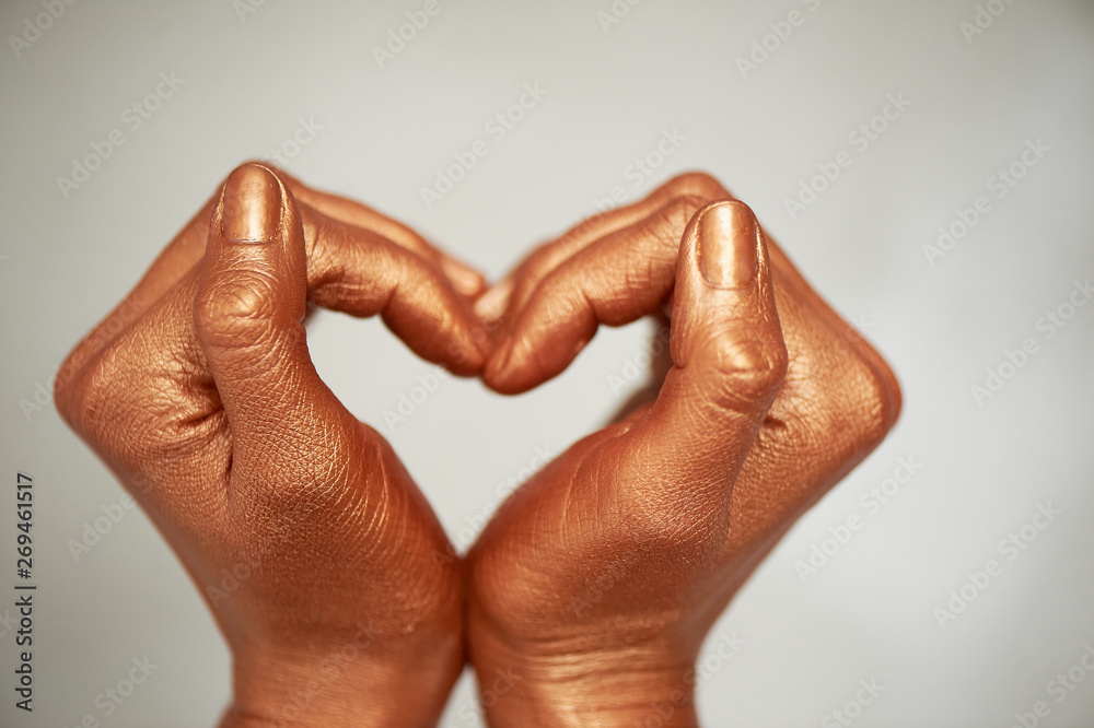 Hands in gold paint, the hands of the artist and creative person. Yoga for hands