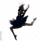 one young beautiful long hair caucasian woman ballerina ballet dancer dancing studio shot silhouette isolated on white background