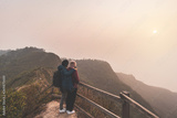 Hiking young couple traveler looking beautiful landscape, Travel lifestyle concept