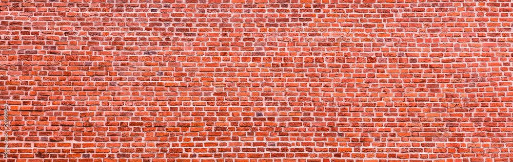 Brick wall, wide panorama of masonry. Wall with small Bricks