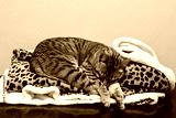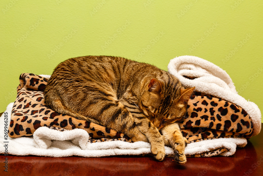 Gato bengalí durmiendo. Prionailurus bengalensis. Gato bengala.