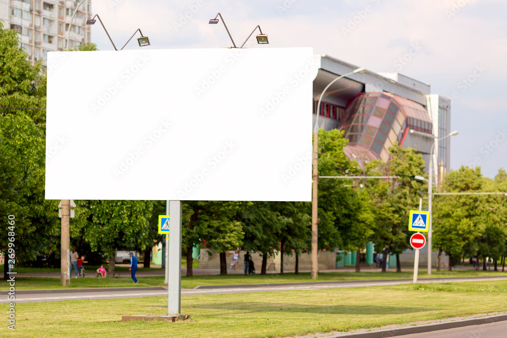 Modern empty blank advertising billboard banner in a city outdoors. Mockup for your advertising project.