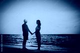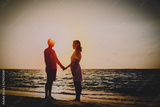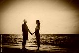 romantic couple holding hands at sunset beach
