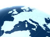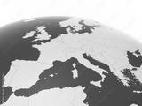 European countries 3d illustration, European continent with visible borders and curvature of the Earth, 3d rendering