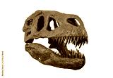 The skull of Torvosaurus large carnivore dinosaur from Jurassic Period - right half-profile isolated on white background