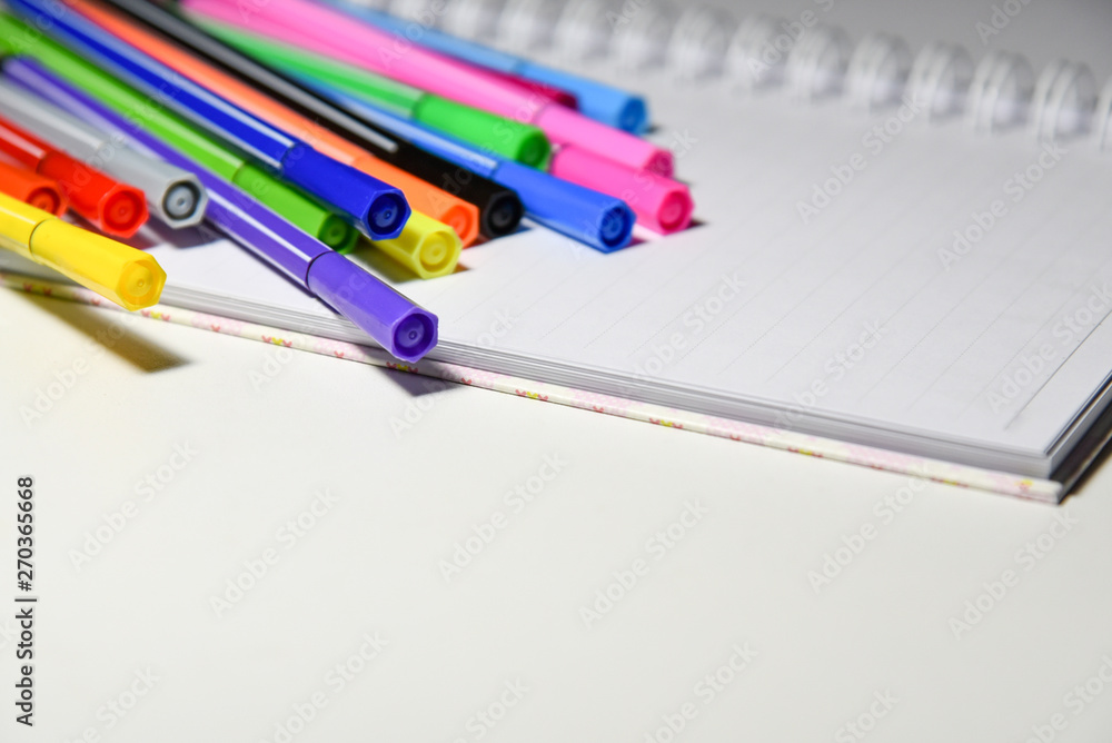Magic color for drawing for creativity, variety of colors magic pen and book on white background